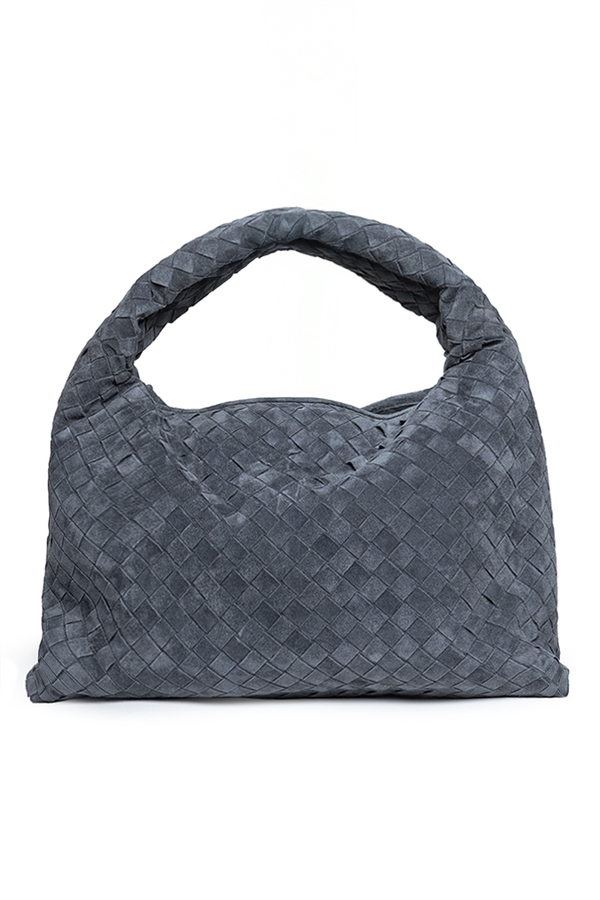 Замшева сумка з плетінням Intrecciato, одне відділення, кишеня на блискавці, застібка-магнітна пластина
