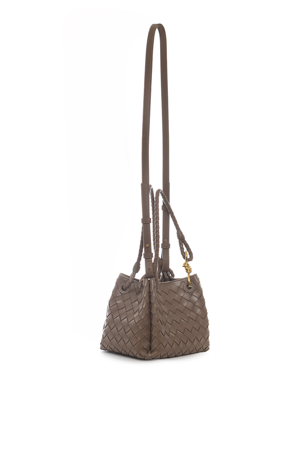 - Шкіряна сумка Small Parachute, фірмове плетіння Intrecciato, фірмовий вузол, регульований знімний ремінець через плече, застібка - магнітна кнопка