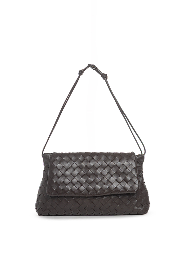 - Шкіряна сумка Giorno з фірмовим плетінням Intrecciato, клапан із магнітною застібкою, одне основне відділення, подвійний плечовий ремінь