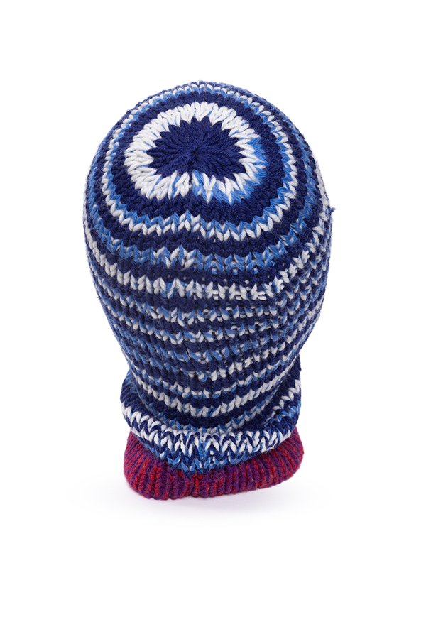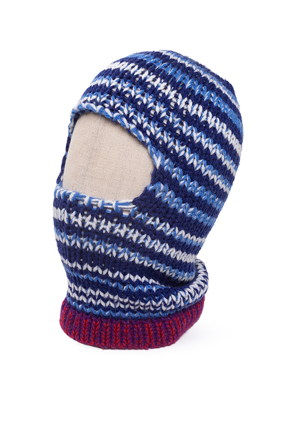 - Трикотажна шапка-балаклава в двуколірну смужку.