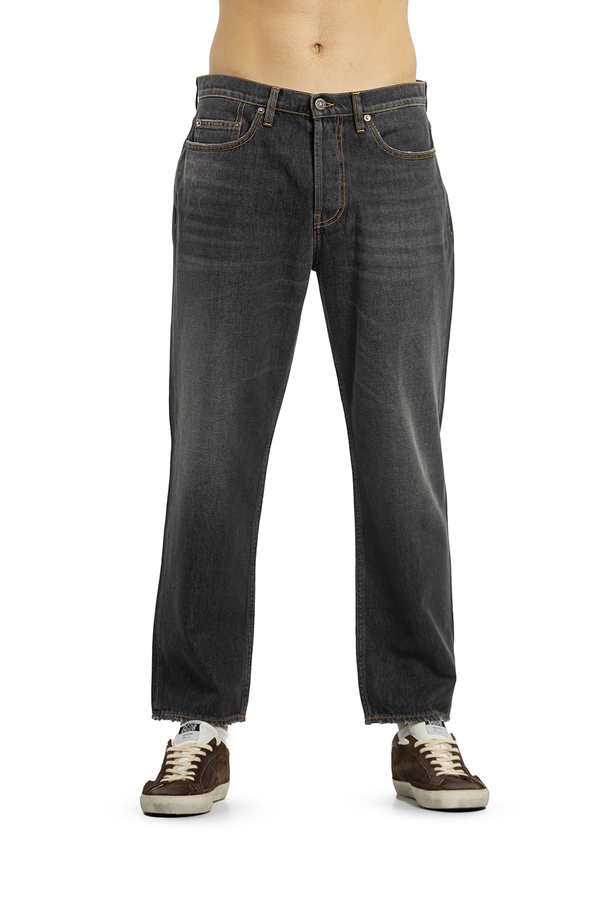 - Джинси з класичними п’ятьма кишенями, ефект потертості, шлевки для ременя