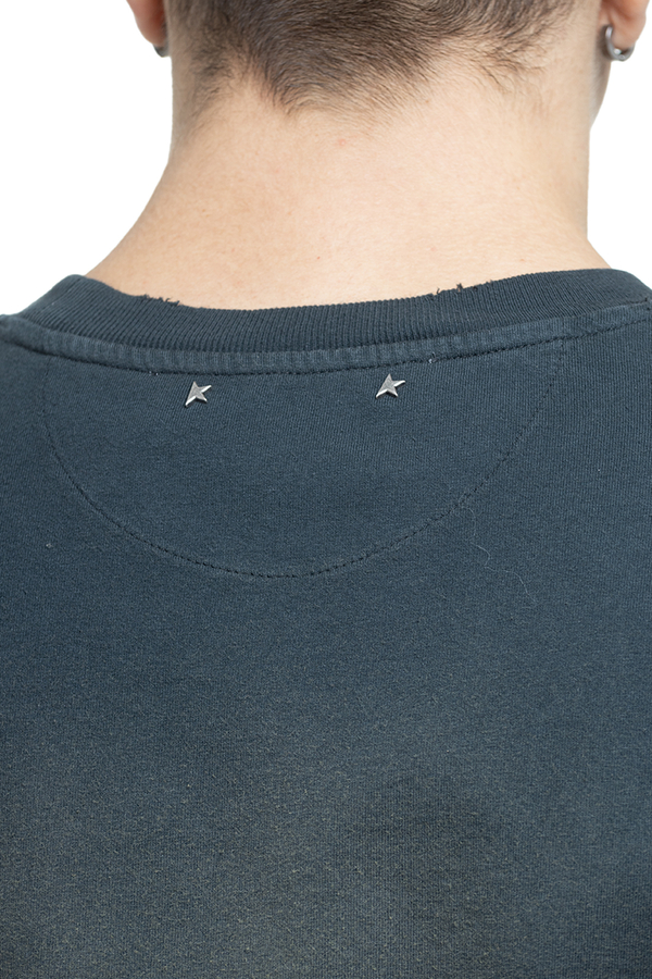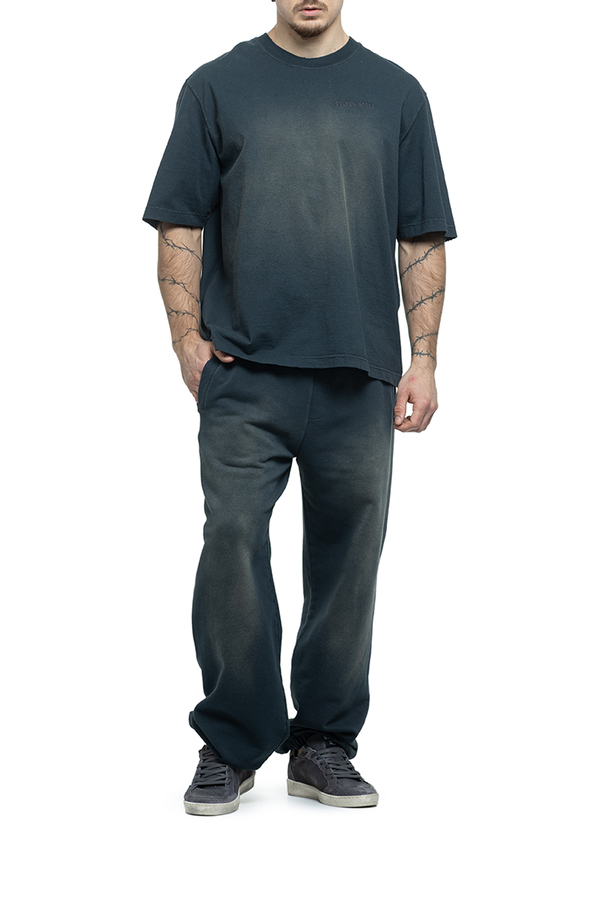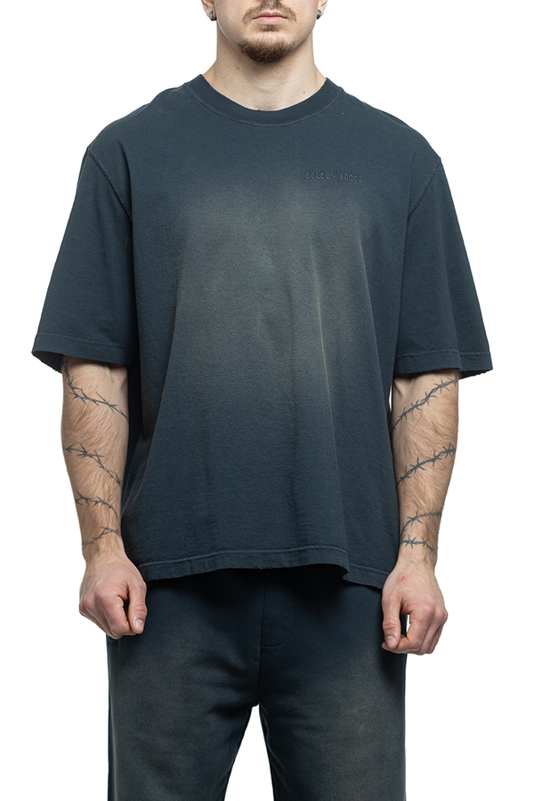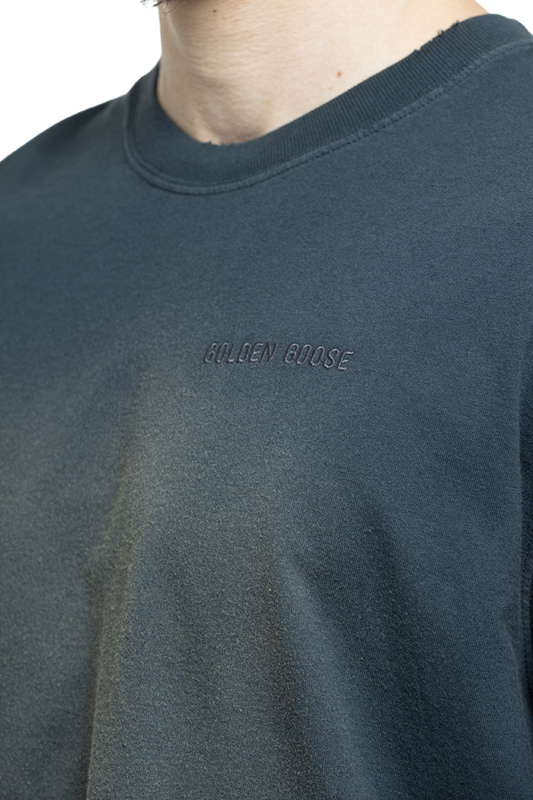 - Футболка з короткими рукавами, ефект потертості, круглий виріз горловини, вишивка логотипу на грудях