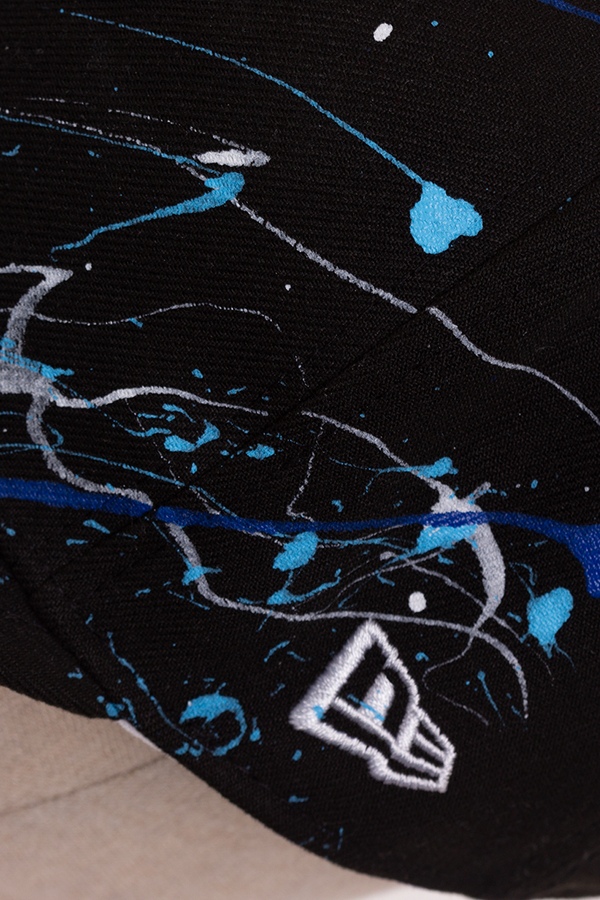 - Бейсболка з регульованим ремінцем на спині, ефект бризків фарби, аплікація логотипу спереду