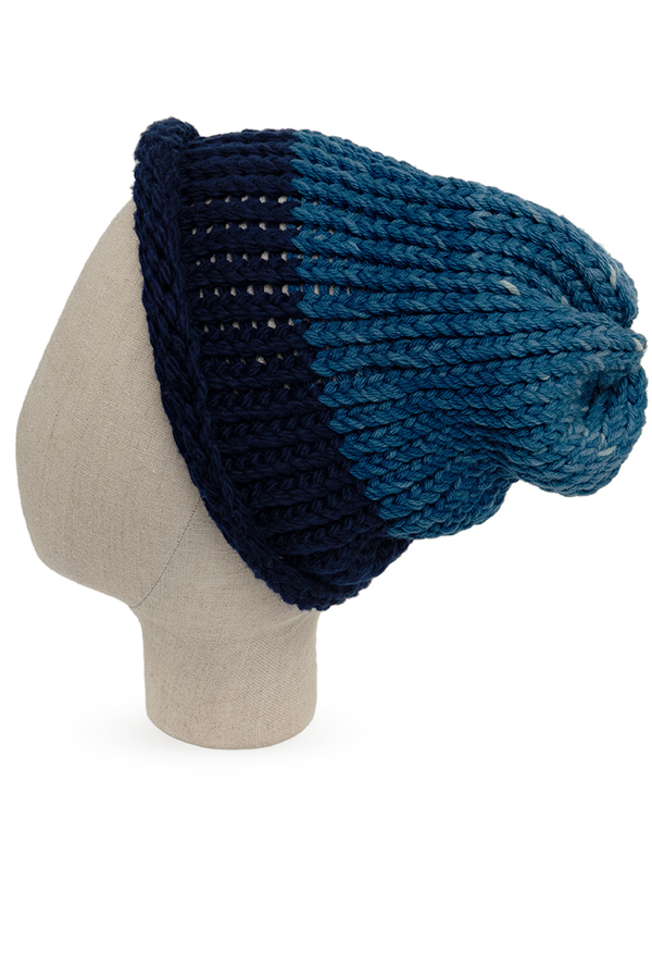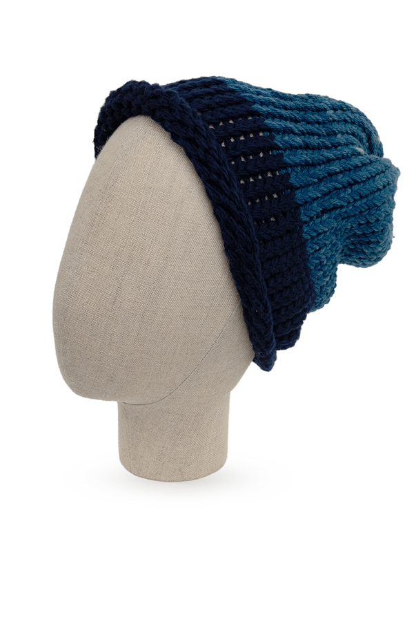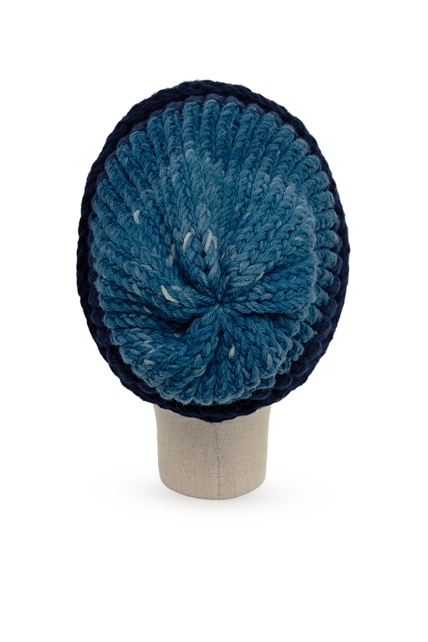- Двоколірна шапка великої в’язки з відворотом