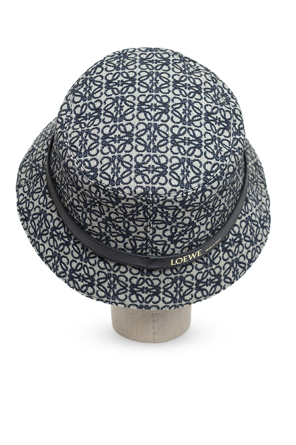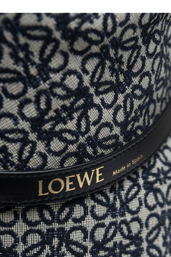 - Капелюх-панама з патерном логотипа по всій поверхні. Шкіряна смужка навколо. Підкладка з бавовняного полотна.