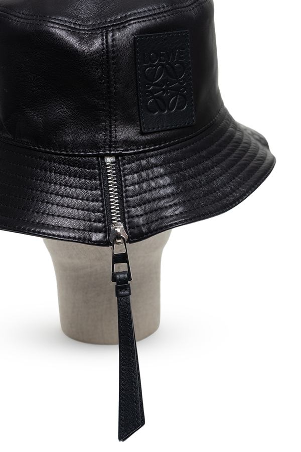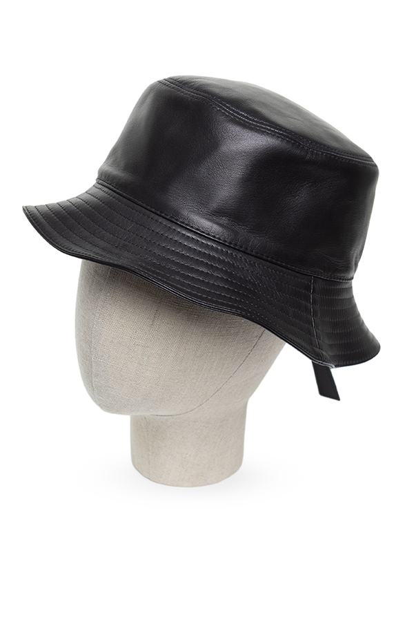 - Шкіряна панама з відстрочкою в рубчик по краях, нашивка з логотипом та застібка на блискавці ззаду.
