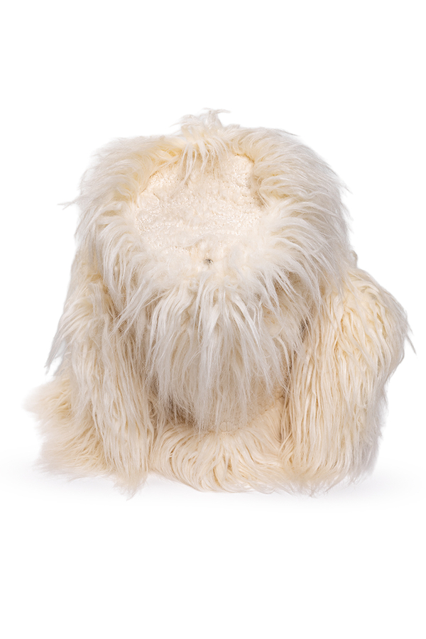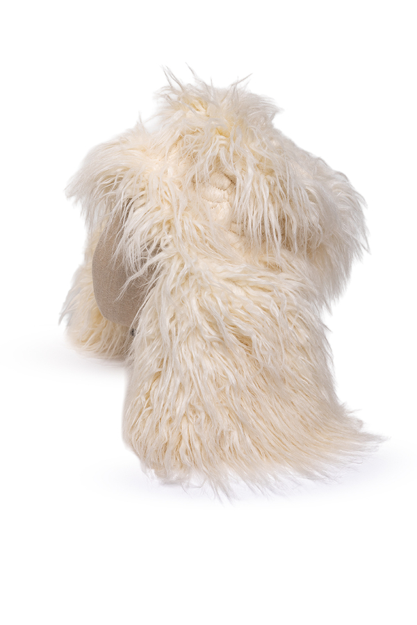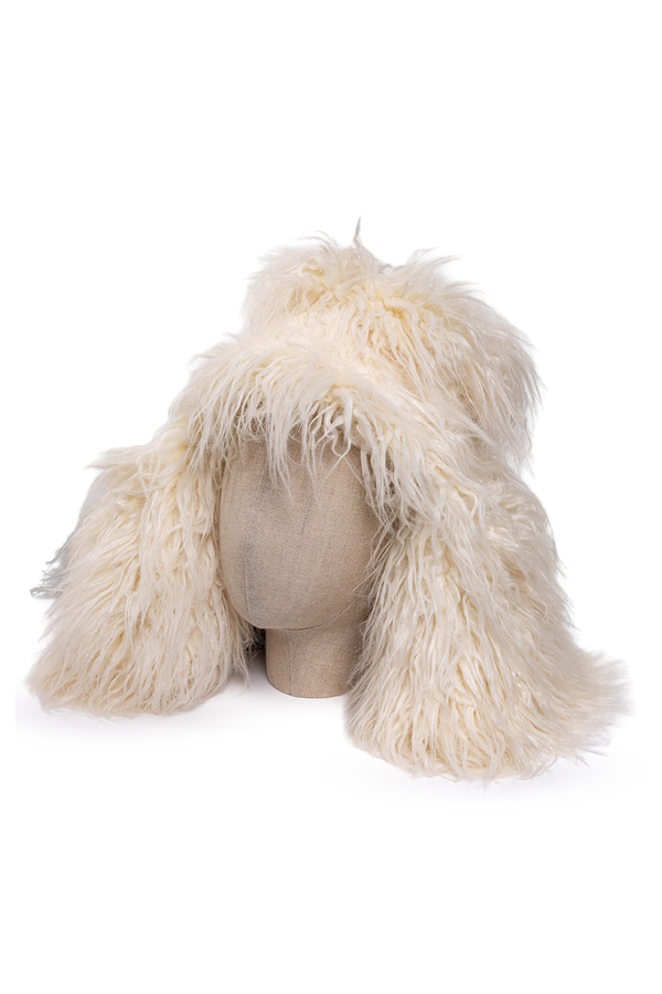 - Шапка із штучного хутра, об’ємна фактура, подовжені бокові частини