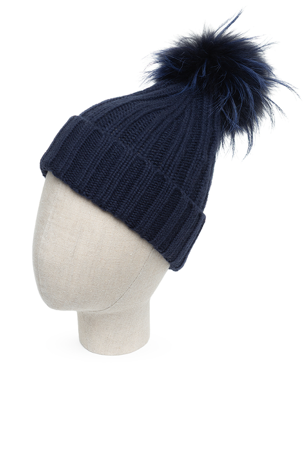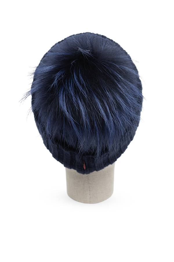 - Шапка грубої в'язки з кашеміру з хутряним помпоном, з відворотом.