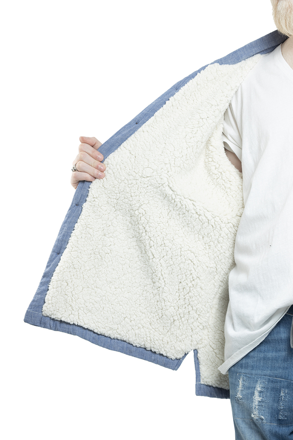 - Утеплена куртка, застібка на гудзики, дві нагрудні кишені з клапанами та застібкою на ґудзики, дві великі накладні кишені спереду, манжети на гудзиках