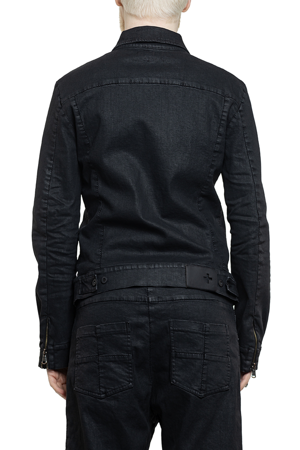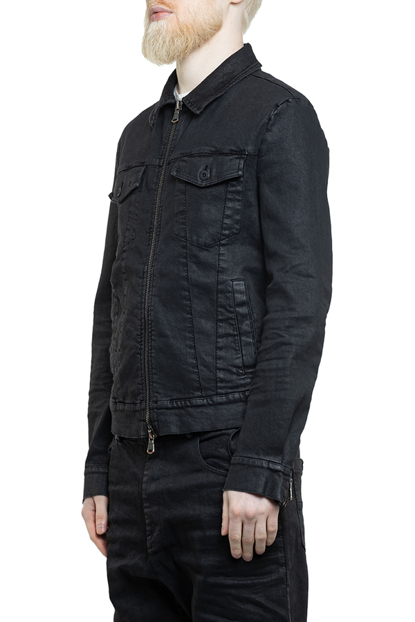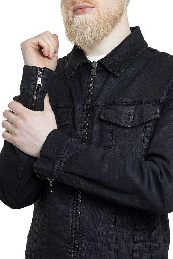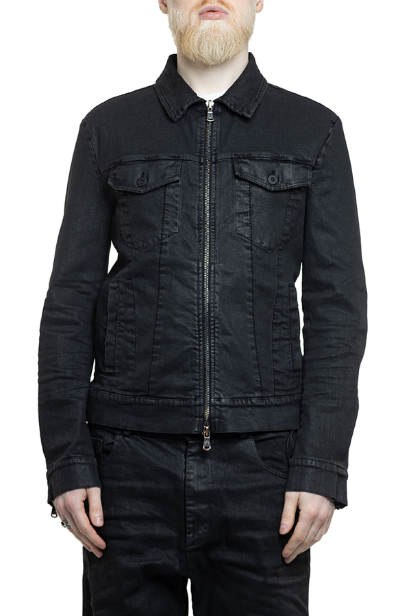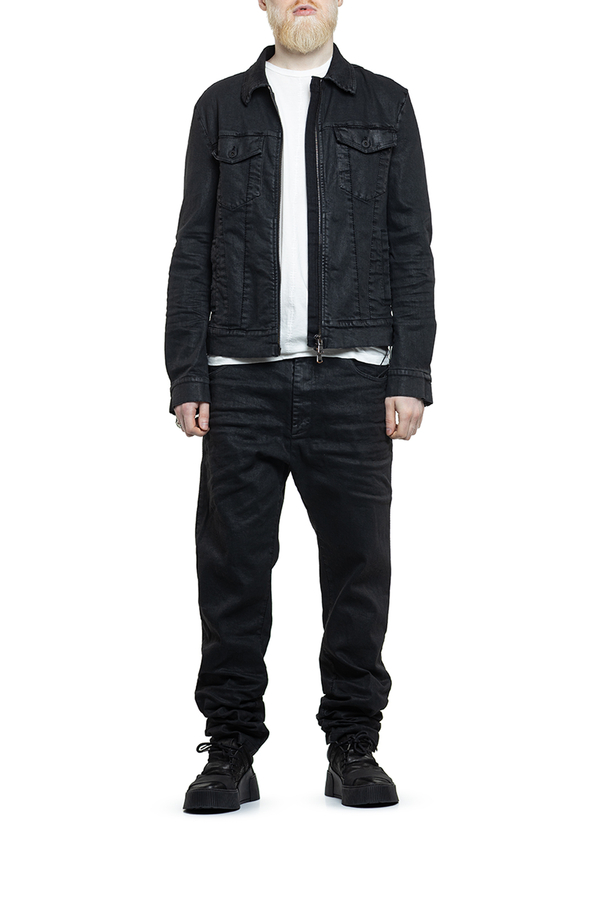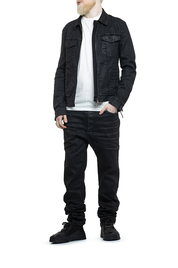- Джинсова куртка класичного крою з покриттям з ефектом шкіри, подвійна застібка-блискавка, дві нагрудні кишені з клапанами та застібкою на ґудзики, дві врізні кишені спереду, регульований низ