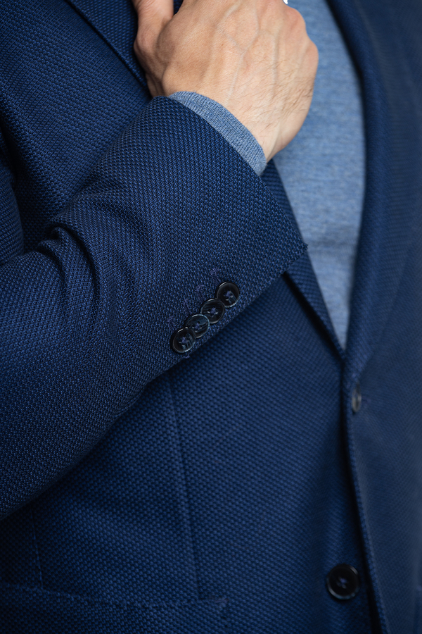 - Однобортний піджак з довгими рукавам і накладними кишенями. Застібка на гудзики.
