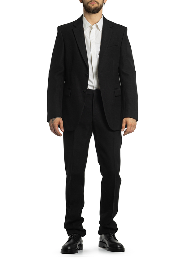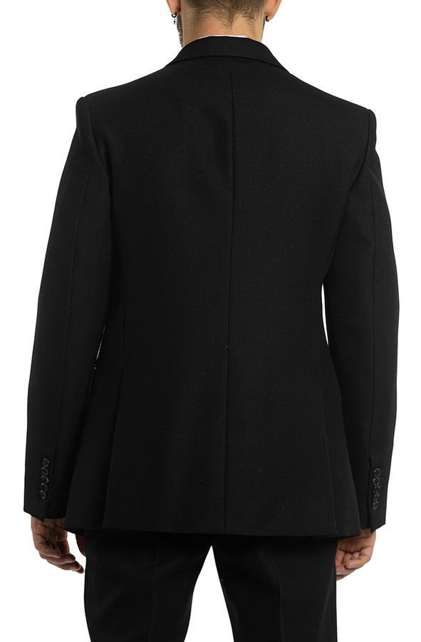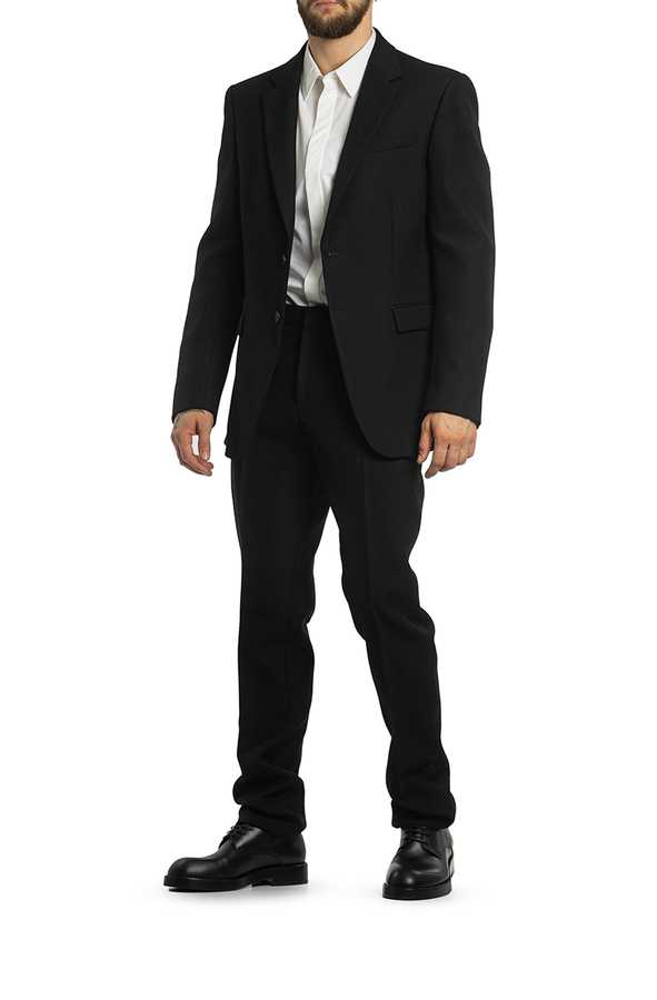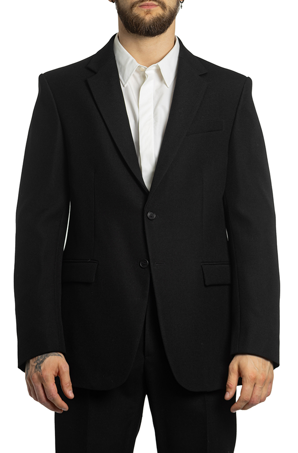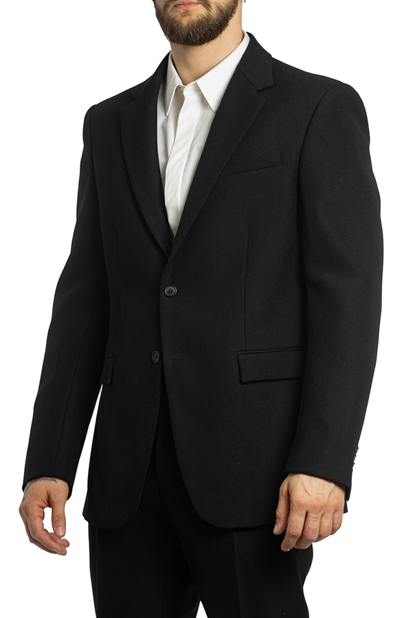 - Однобортний піджак з вовни, з довгими рукавами. Дві передні кишені з клапанами і однією нагрудною кишенею. Застібка на гудзики, модель з підплічниками.