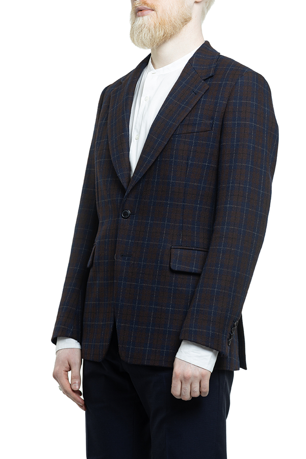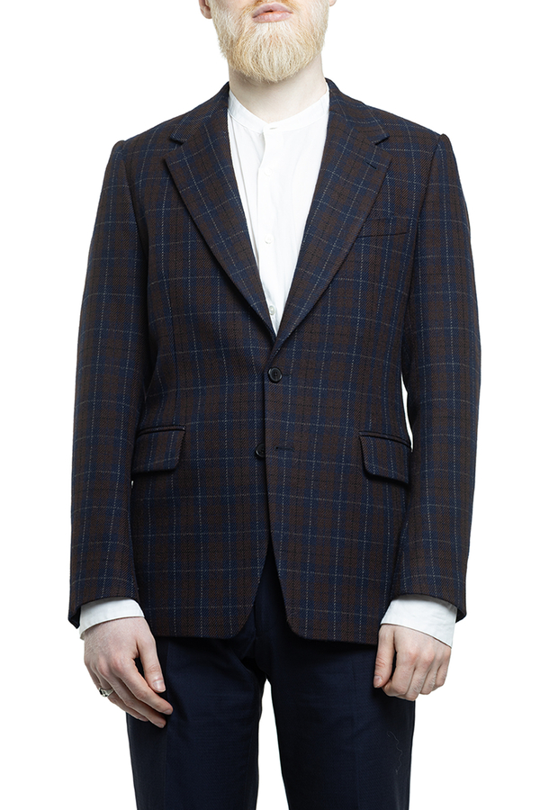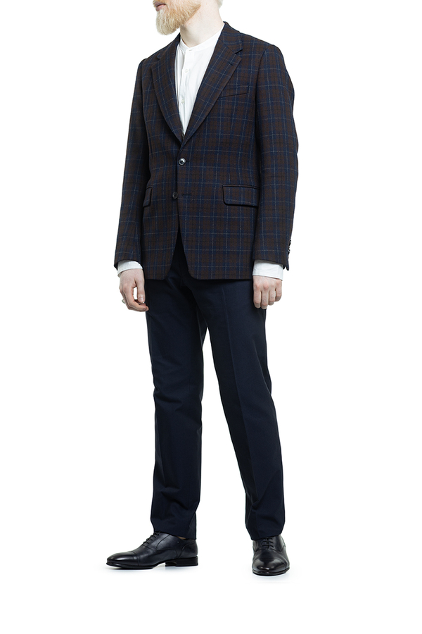 - Смугастий піджак з вовни. Довгі рукава і застібка на гудзики.