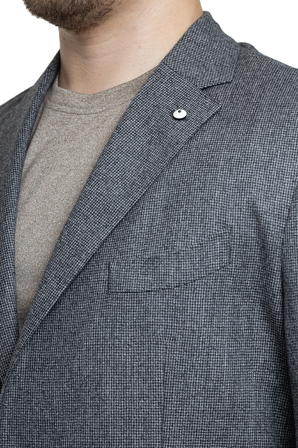 - Піджак з накладними кишенями і з дрібним візерунком.