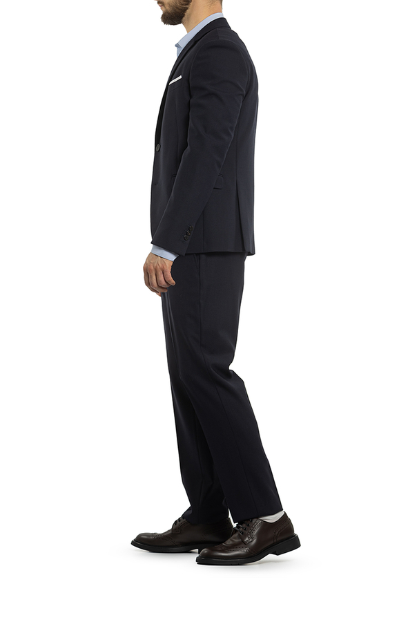 - Класичний брючний костюм: однобортний піджак та штани зі стрілками