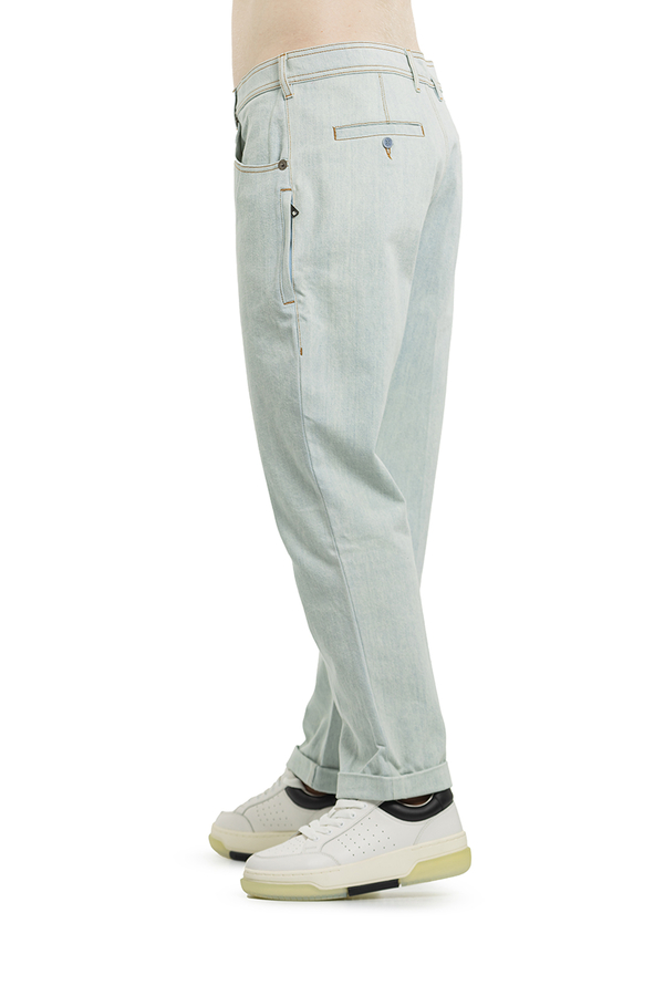 - Джинси завужені з підворотом, прорізні кишені сзаду