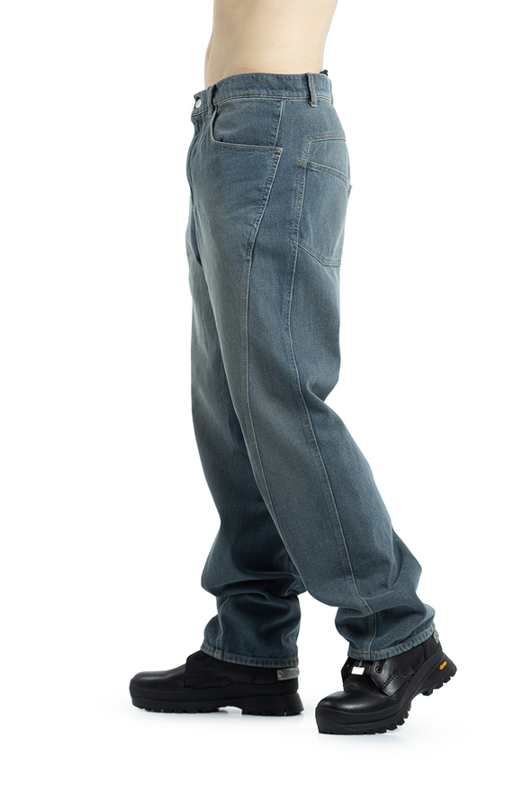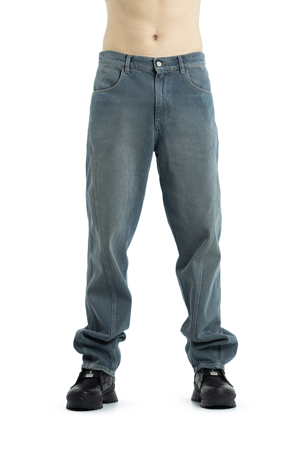 - Джинси прямі, петлі для ременя, застібка на блискавку та гудзик, дві прорізні кишені спереду та дві накладні ззаду