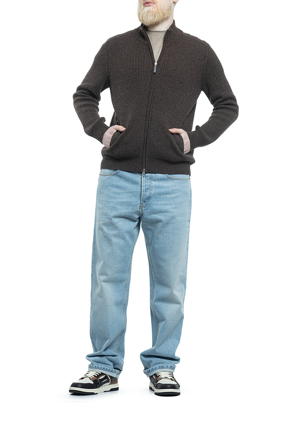 - Кашемірова кофта с застібкою на блискавку і довгими рукавами. З бічними кишенями з обдобленням.