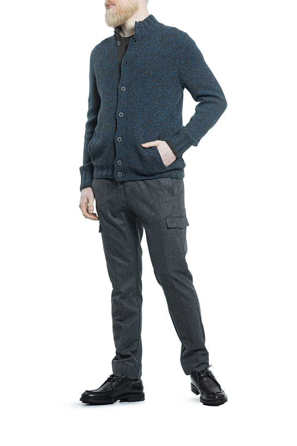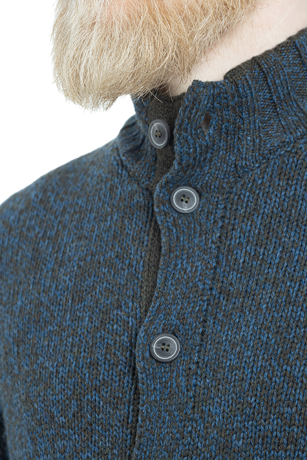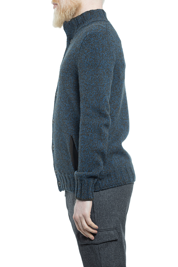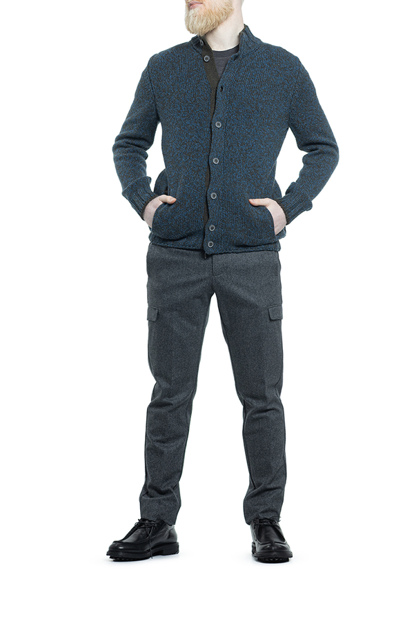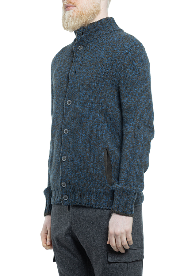 - Кофта з довгими рукавами і застібкою на гудзики. З боків дві прорізні кишені. Високий комір.