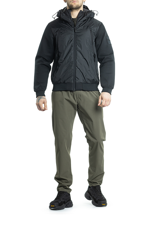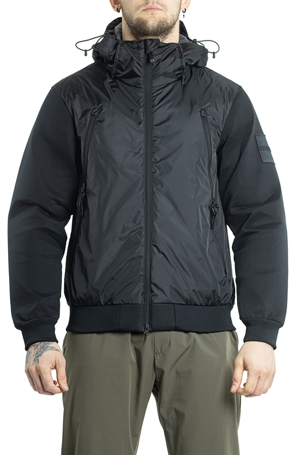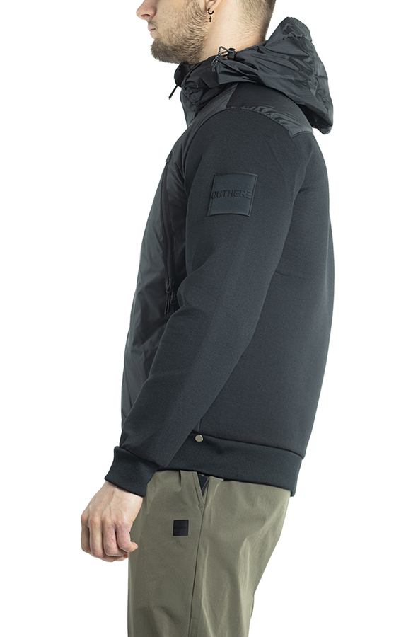 - Кофта з капюшоном на кулісі, еластичний низ та манжети, прорізні кишені на подвійній блискавці спереду, нашивка логотипу на рукаві