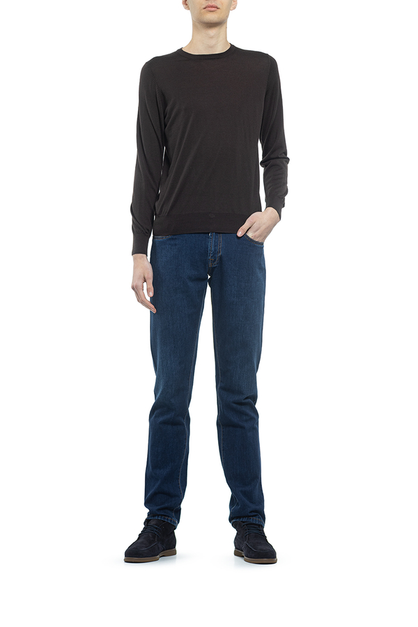 - Кашеміровий светр з довгими рукавами і круглим вирізом горловини.