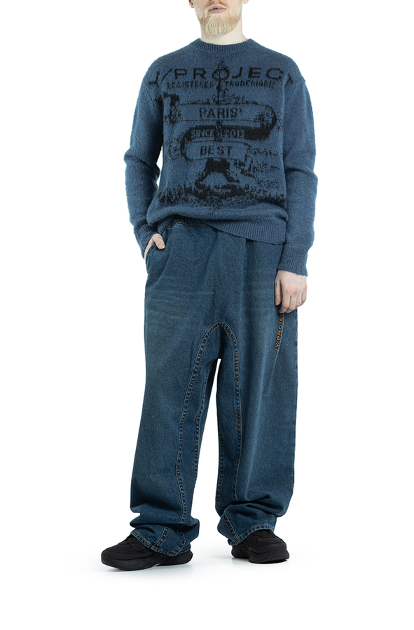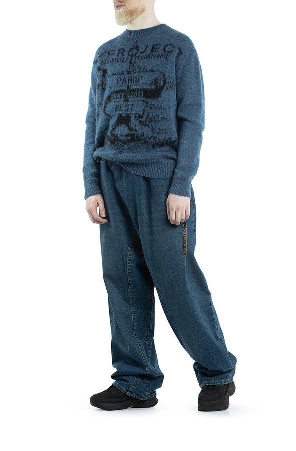 - Светр з довгими рукавами, круглий виріз горловини, манжети та низ в рубчик, спереду принт по всій довжині