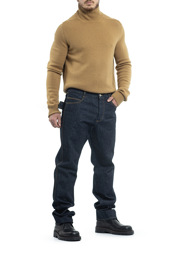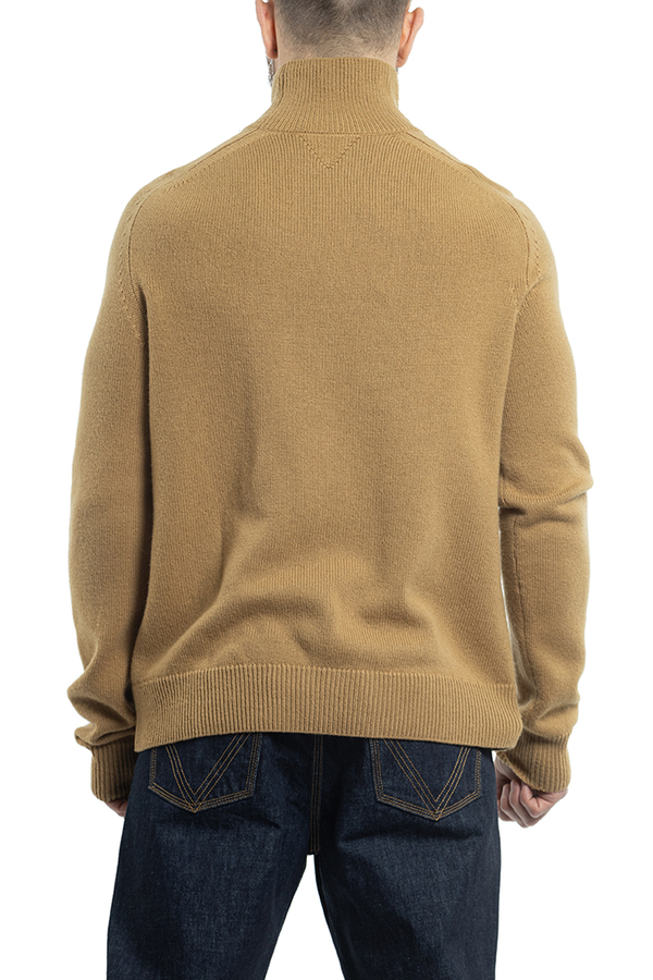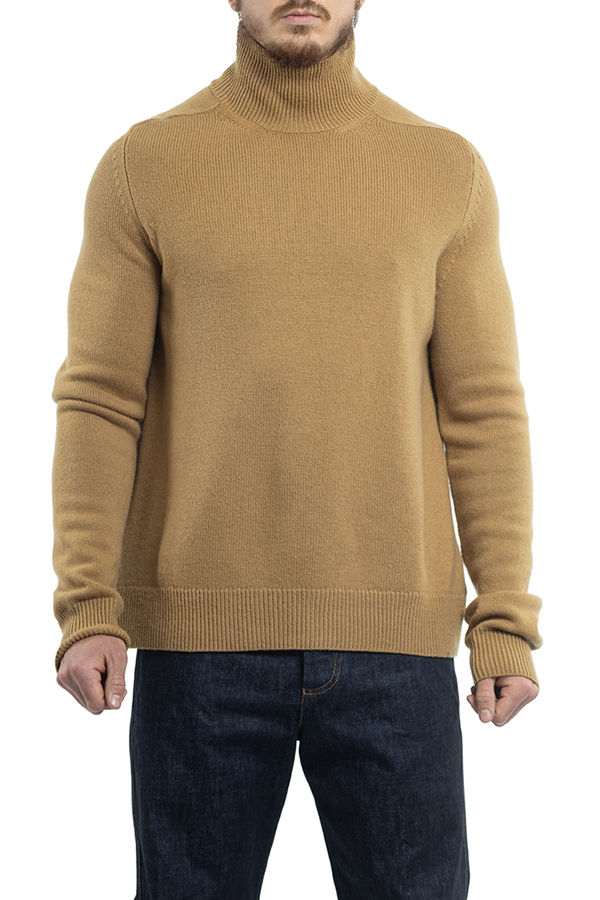 - Джемпер з високим коміром. Високий комір, краї в рубчик і довгі рукави.