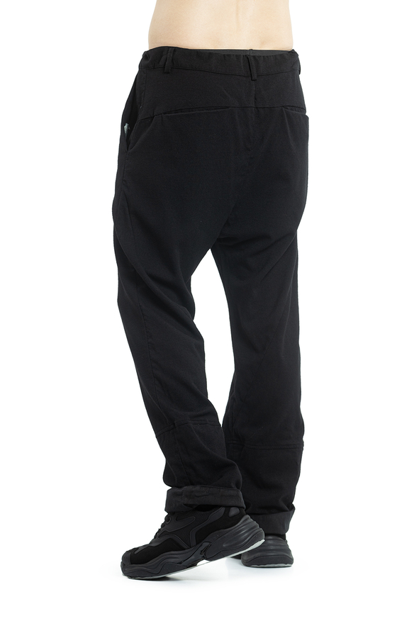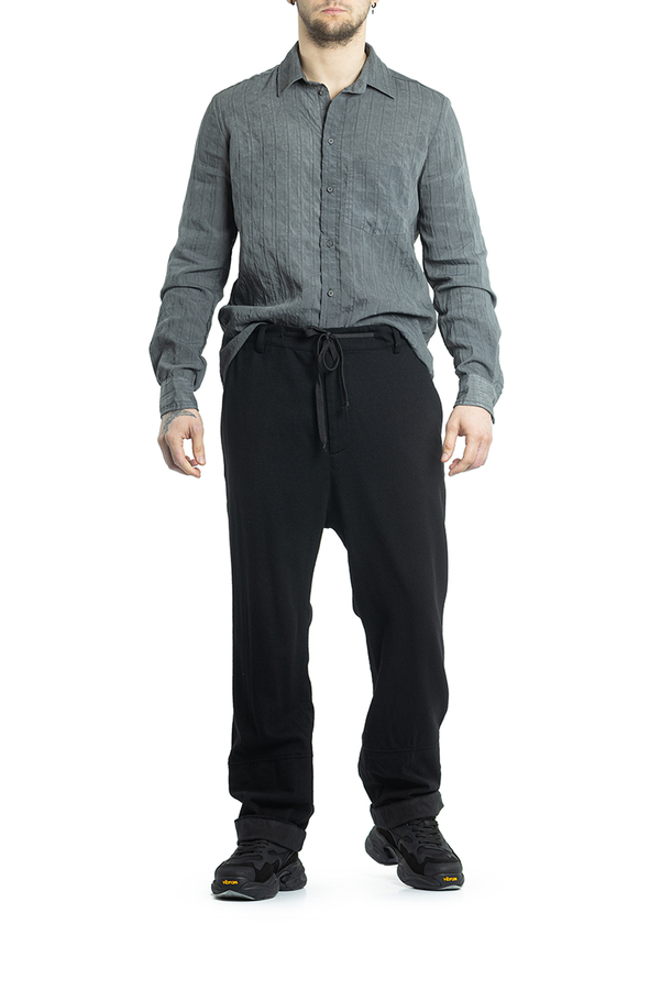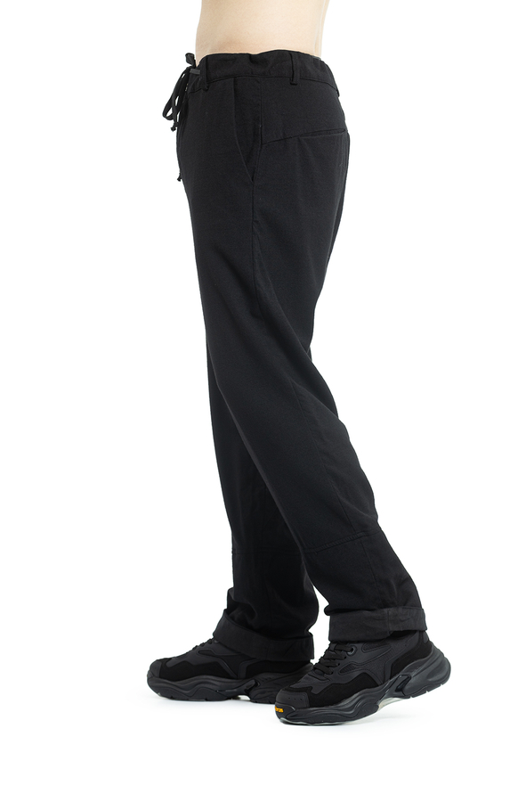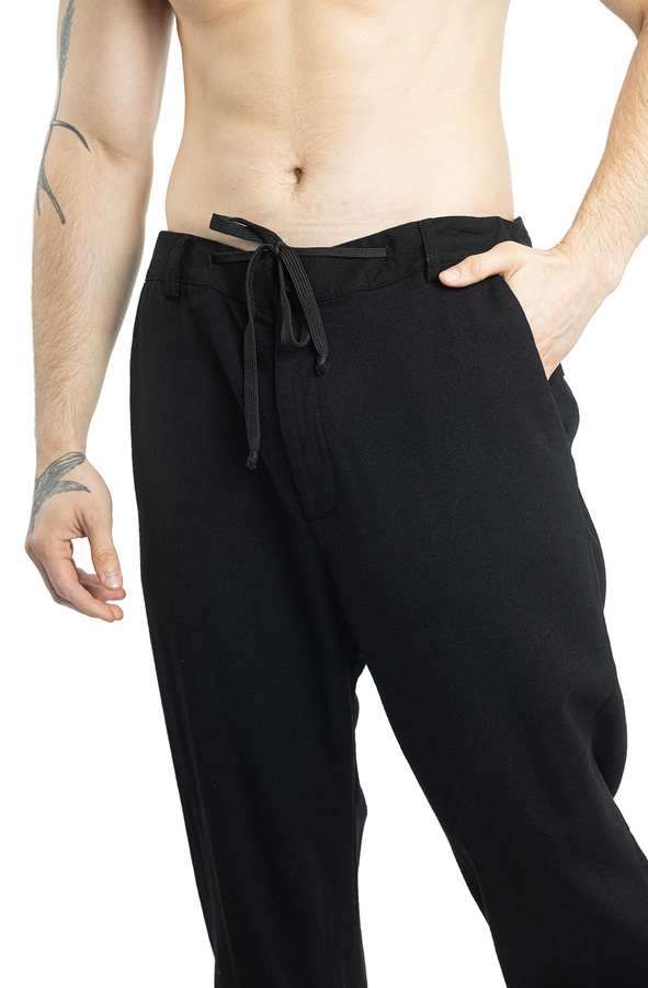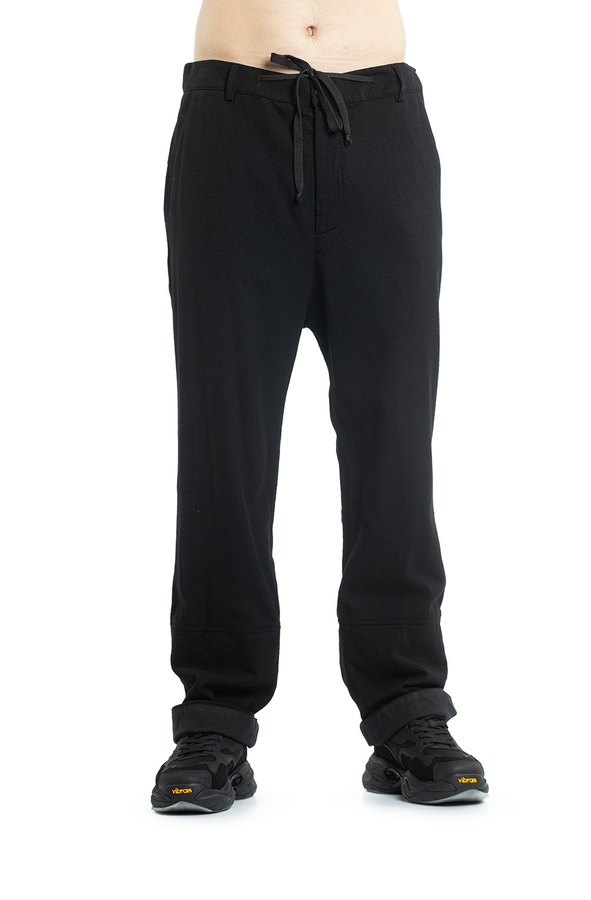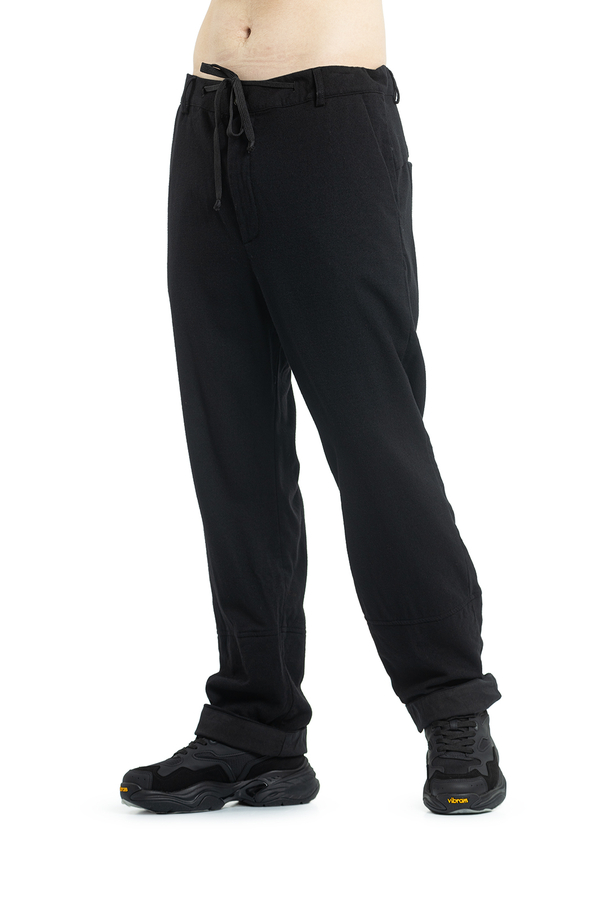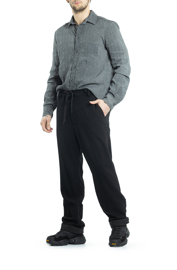 - Штани з еластичним поясом на шнурку, петлі для ременя, дві прорізні кишені по боках та дві ззаду