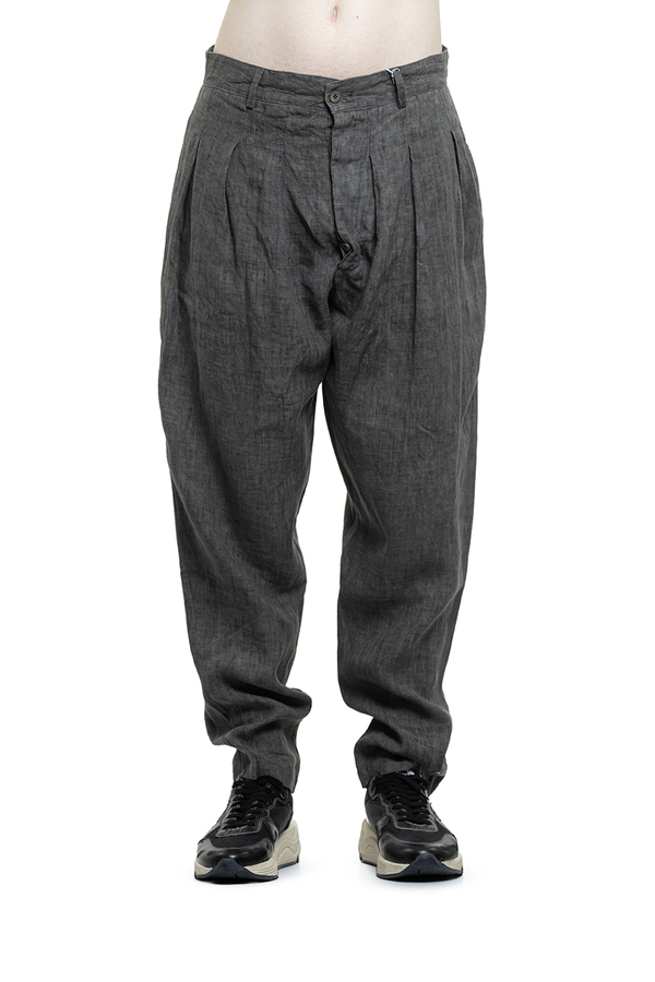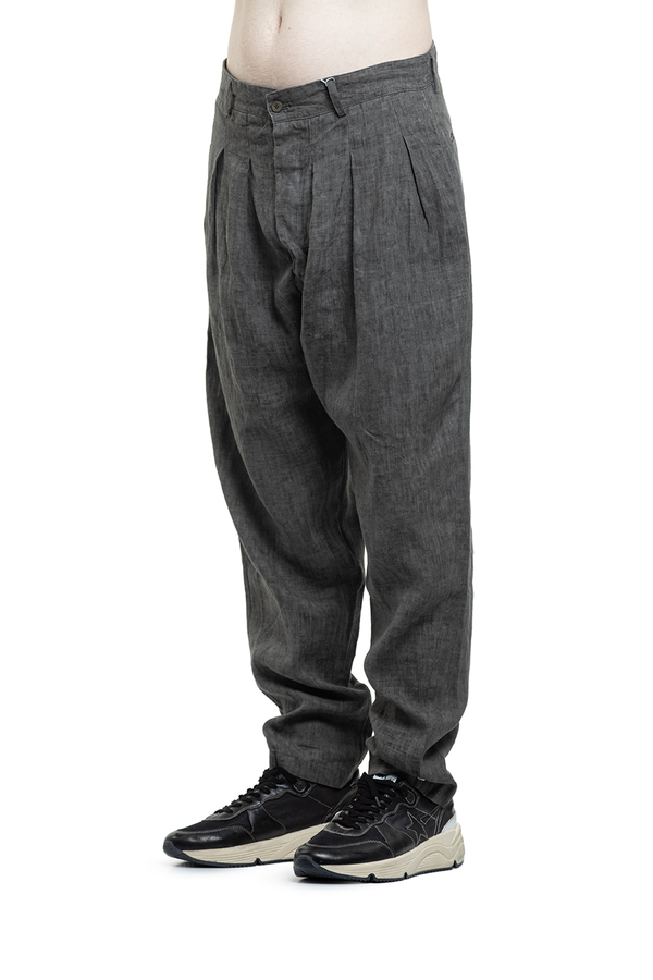 - Штани із защипами спереду, шлевки для ременя, дві прорізні кишені по боках та дві ззаду, застібка на гудзики