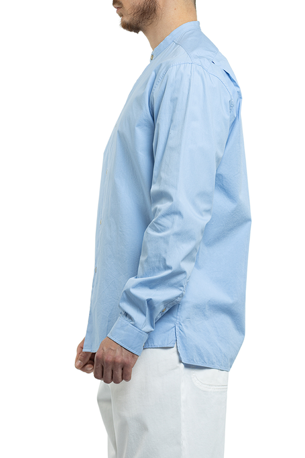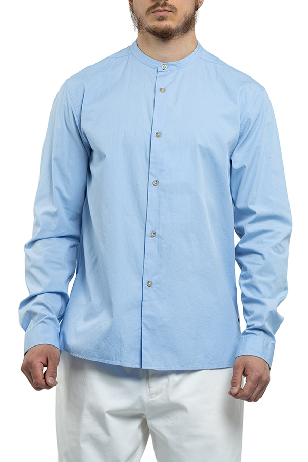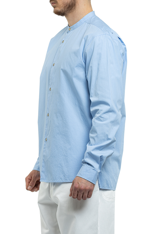 - Сорочка з довгими рукавами і комірором-стійкою. Ровний поділ, застібка на гудзики.