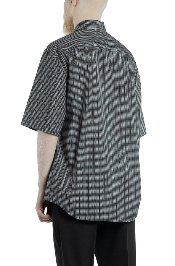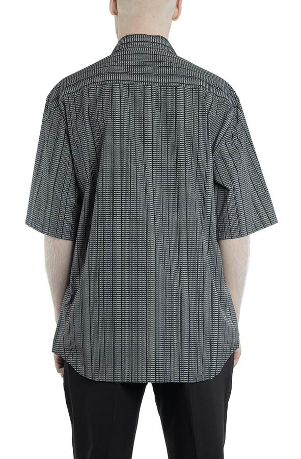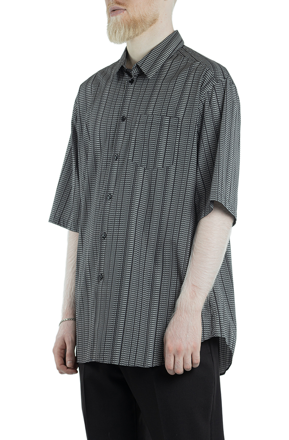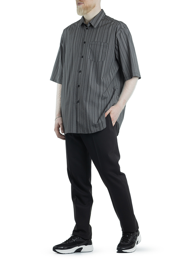 - Бавовняна сорочка з короткими рукавами. Класичний комір, застібка на ґудзиках спереду, нагрудна кишеня та закруглений поділ.