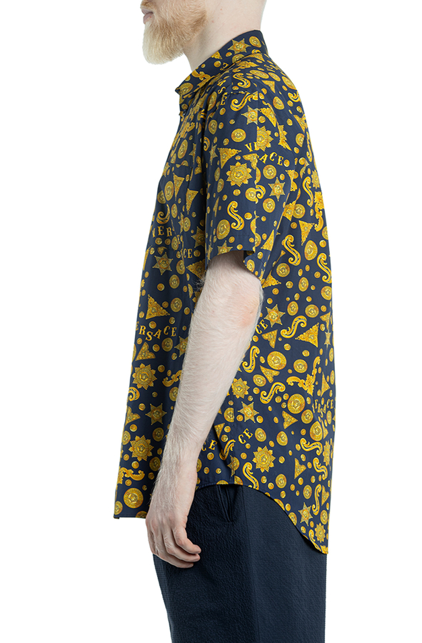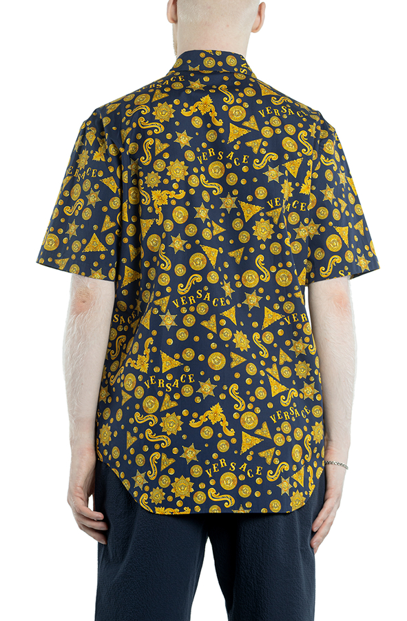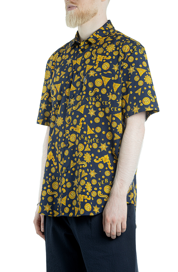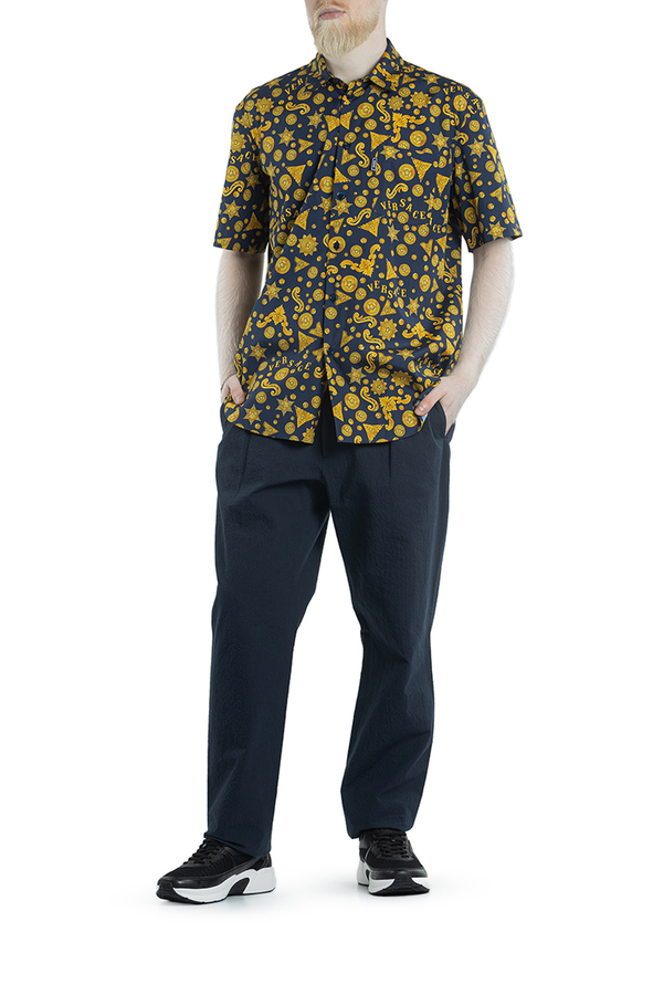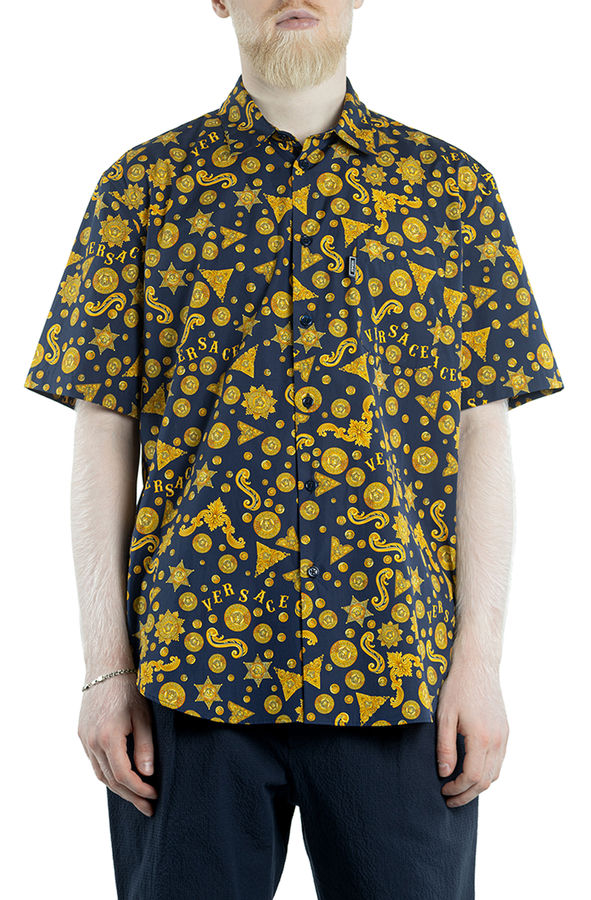 - Бавовняна рубашка з короткими рукавами. Візерунок з геометричних фігур і логотипів.