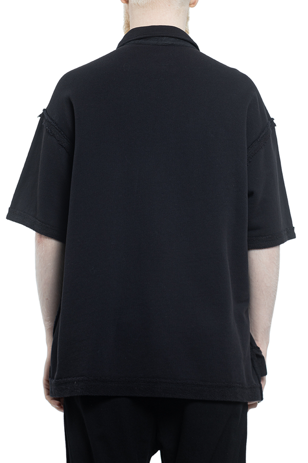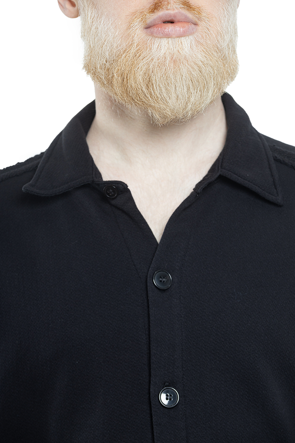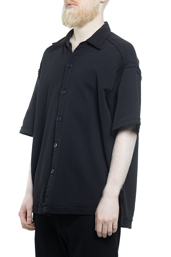 - Сорочка з короткими рукавами, класичний комір, занижена лінія плечей, вивернуті шви по всій довжині, застібка на ґудзики