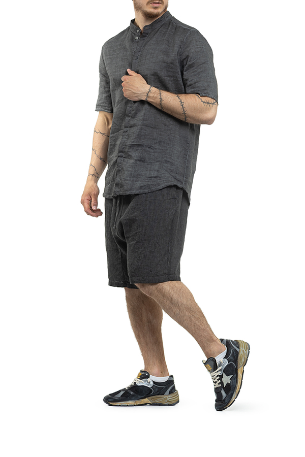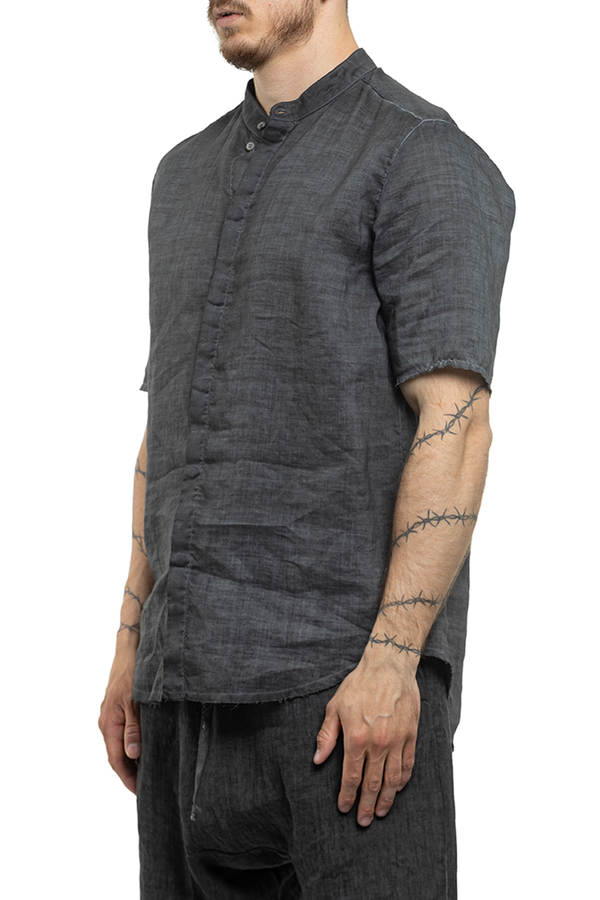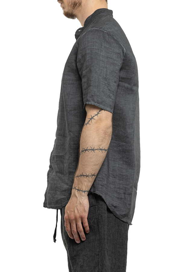 - Сорочка з короткими рукавами, кругла горловина, вирізи по боках, прихована застібка на гудзиках