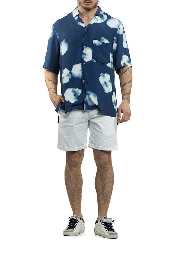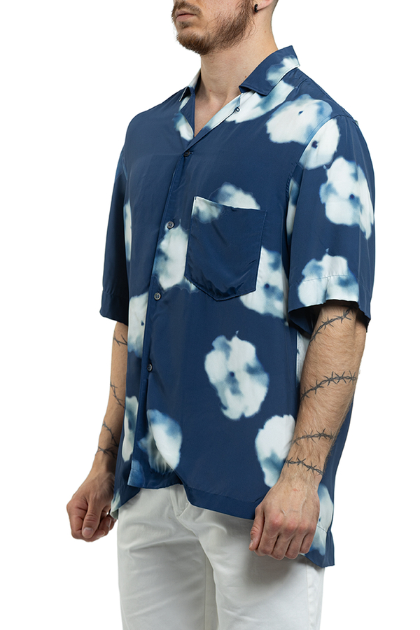 - Сорочка з віскози з короткими рукавами. Патерн з акварельними квітами. Відкладний комір, застібка на гудзики.