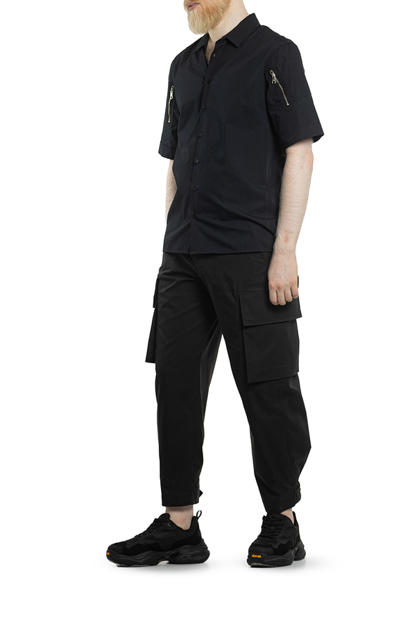 - Сорочка з коротким рукавом на гудзиках, кишені з блискавками на рукавах