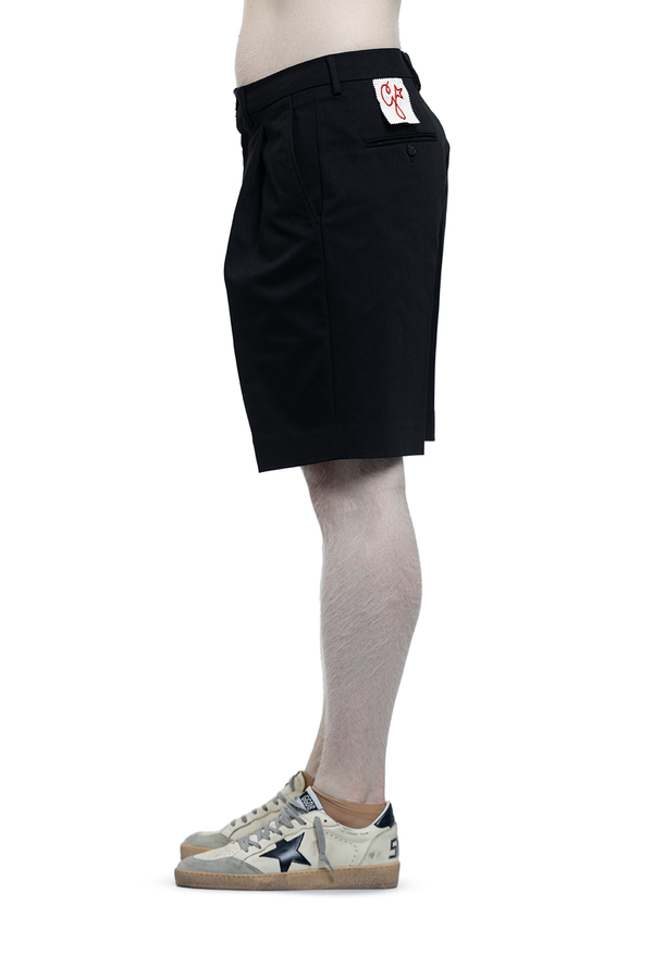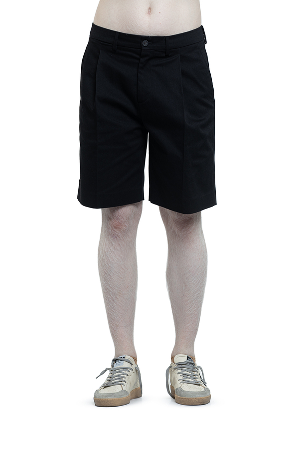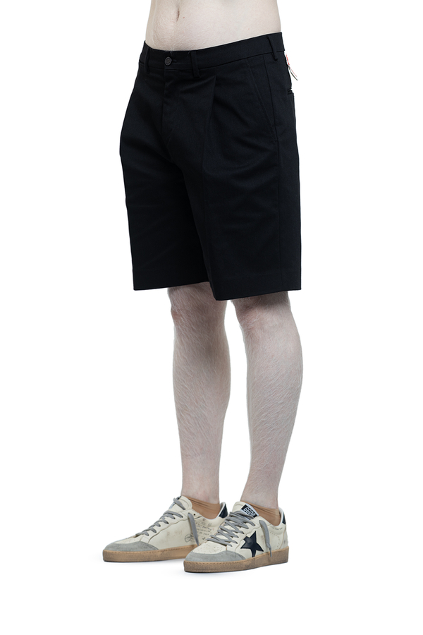 - Шорти із защипами спереду, дві прорізні кишені на гудзиках ззаду та дві по боках, застібка на блискавку та гудзик, фірмова подвійна зірочка ззаду