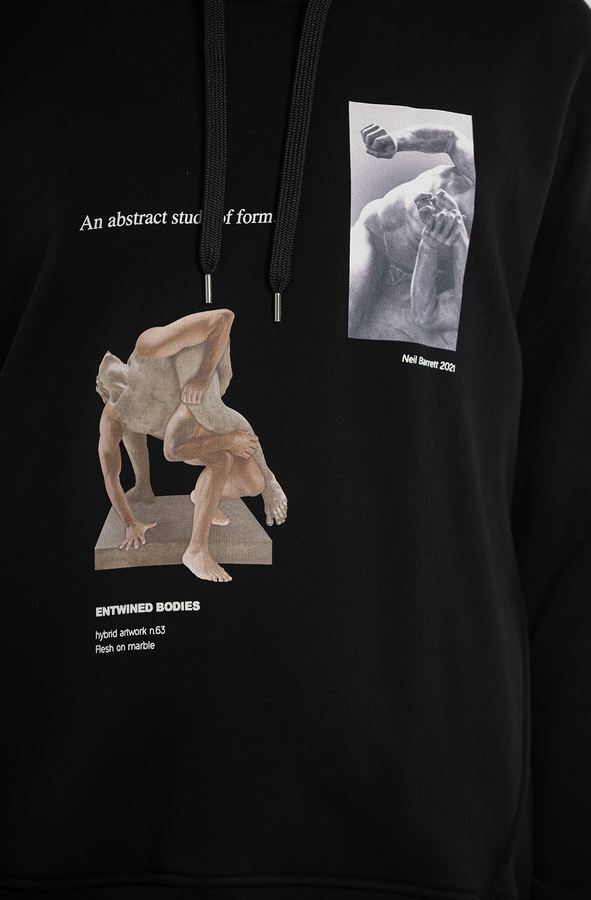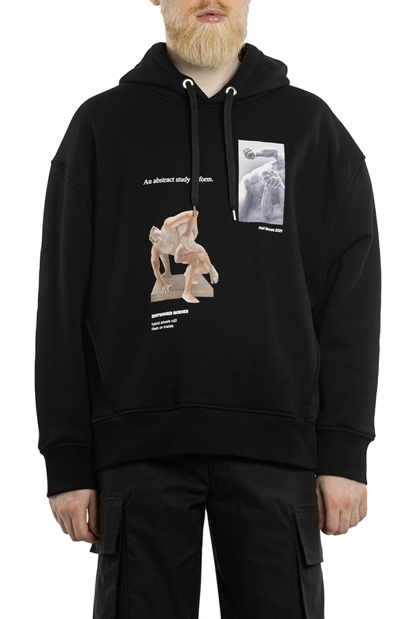 - Бавовняне худі з капюшоном і кишенями. З принтом античних статуй, куліска в капюшоні, прямий крій, довгі рукави.