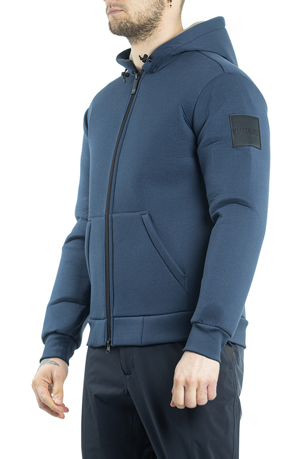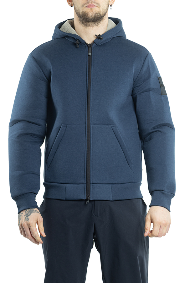 - Кофта з капюшоном на кулісці, застібка на блискавку спереду, дві кишені спереду, нашивка логотипу на рукаві