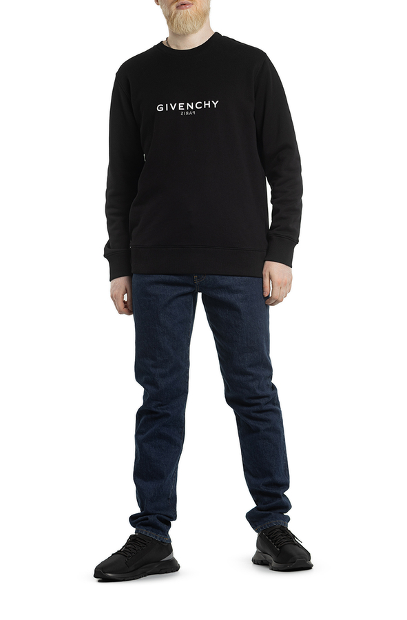 - Світшот з довгими рукавами, круглий виріз горловини, ребристі манжети та низ, принт логотипу на спині та грудях