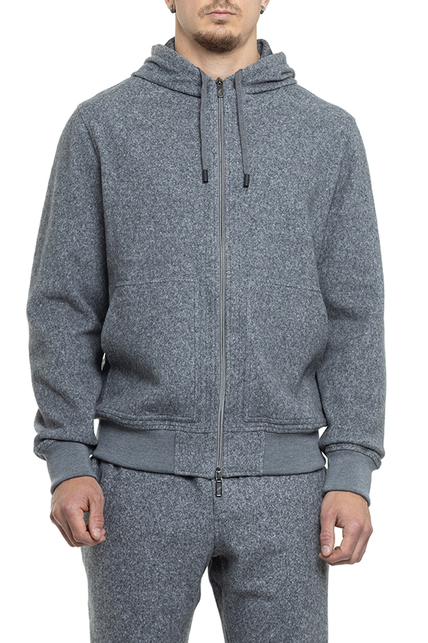 - Худі з довгими рукавами та капюшоном, еластичні низ та манжети, застібка на подвійну блискавку, дві накладні кишені спереду