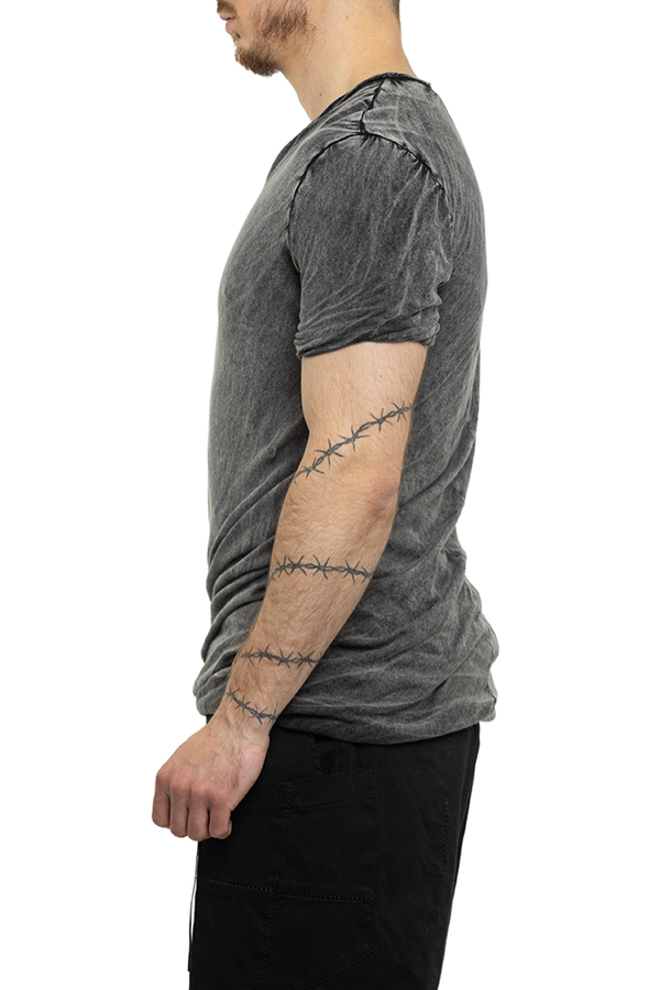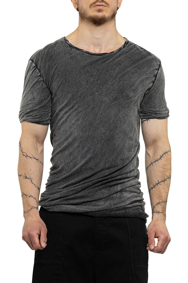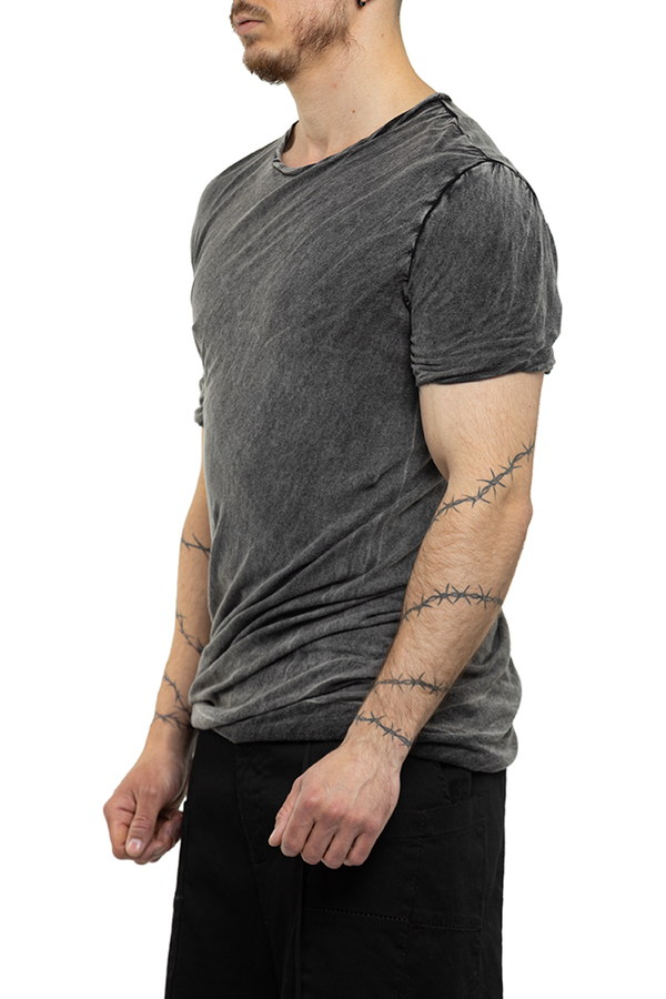 - Футболка з короткими рукавами, круглий виріз горловини, ефект потертості