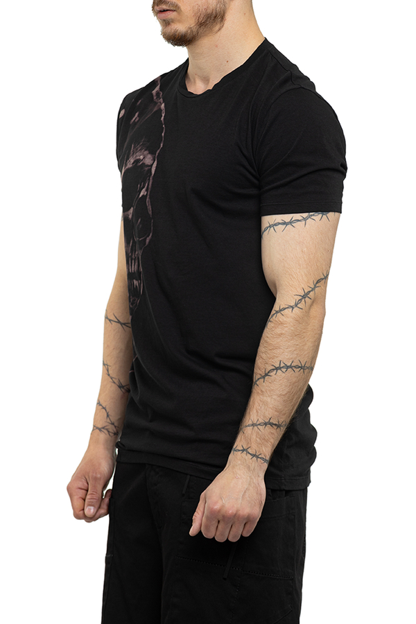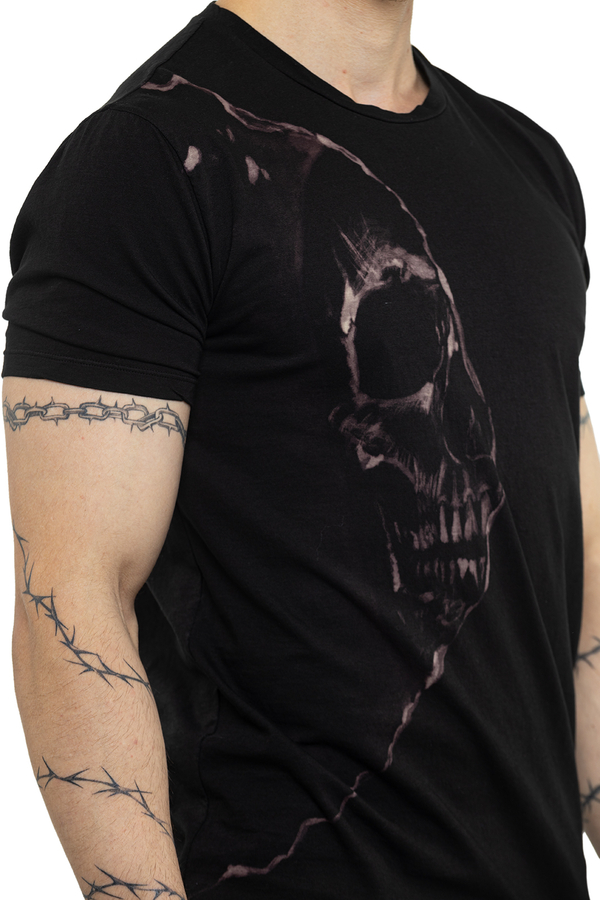 - Футболка з короткими рукавами, круглий виріз горловини, принт у вигляді черепа на грудях