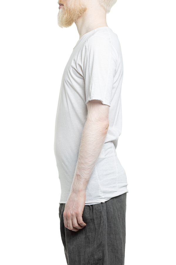 - Футболка з короткими рукавами, круглий виріз горловини, необроблені краї