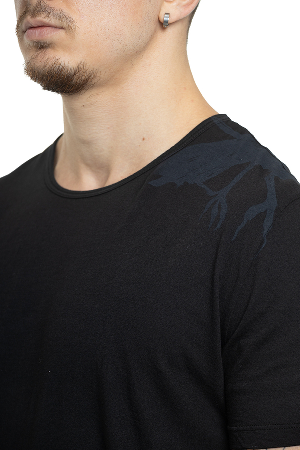 - Футболка з короткими рукавами, круглий виріз горловини, оригінальний принт на плечі