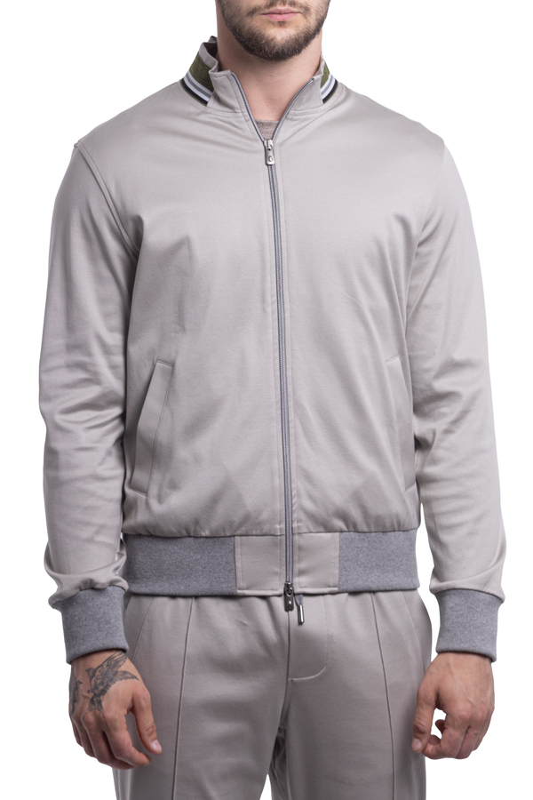 - Спортивна кофта з еластичними манжетами та низом, застібка на подвійну блискавку спереду, дві прорізні кишені по боках