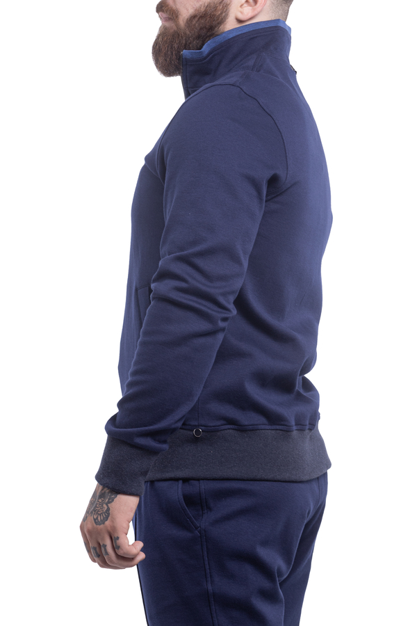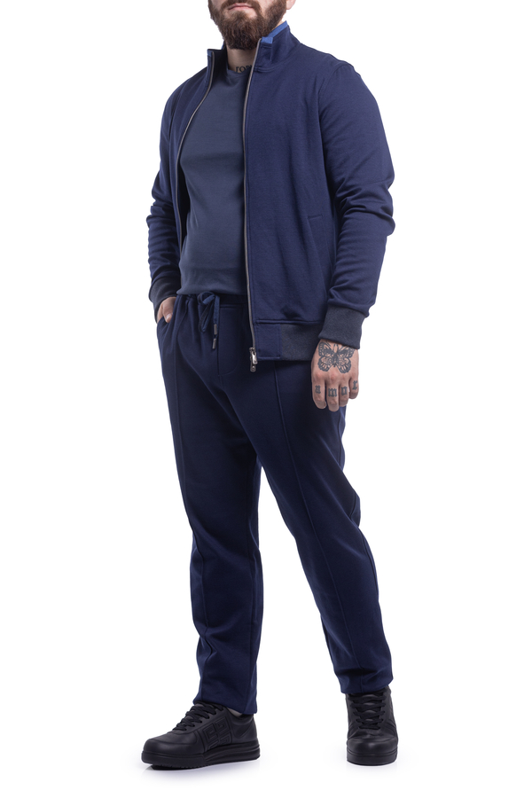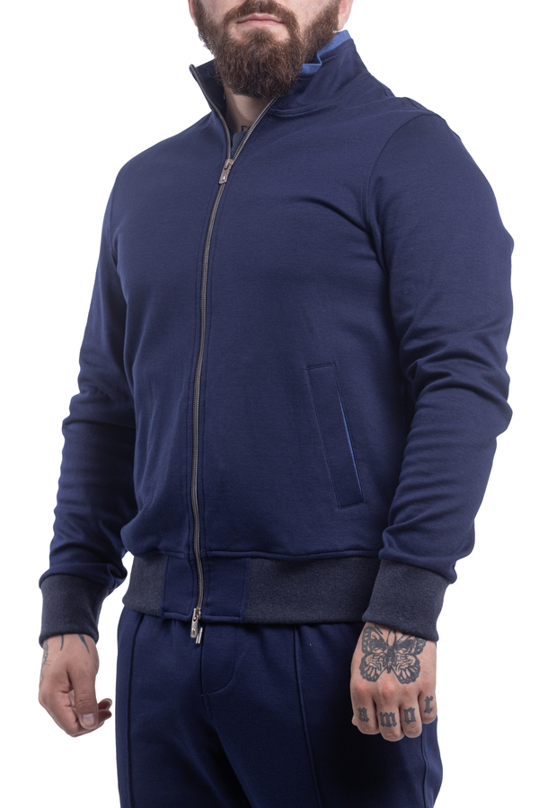 - Спортивна кофта з еластичними манжетами та низом, застібка на подвійну блискавку спереду, дві прорізні кишені по боках