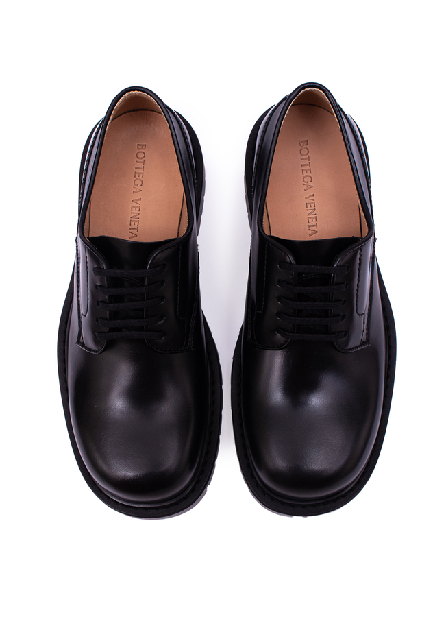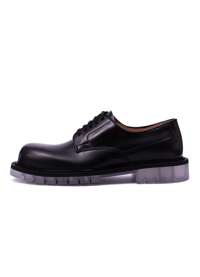 - Шкіряне взуття на шнурівці Derby, напівпрозора підошва, полірована обробка, фірмова устілка, круглий носок, кріплення на шнурівці спереду, гумова підошва.