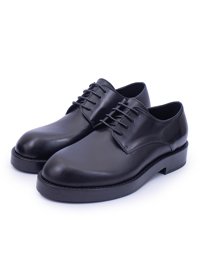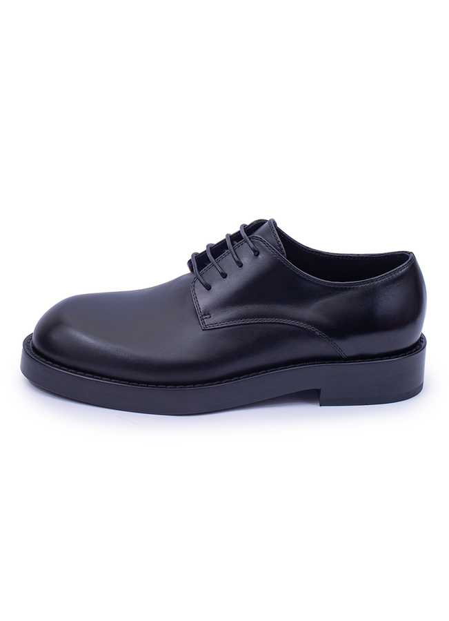 - Шкіряні туфлі на шнурках. Закруглений носок, шнурівка спереду, шкіряна устілка з логотипом та шкіряна підошва.