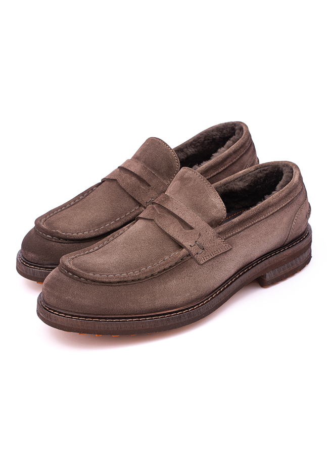 Замшеві лофери на хутрі